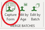 To create a merged batch start by clicking on the capture form. This will open the form below which allows you to create the temporary batches for your merge form: