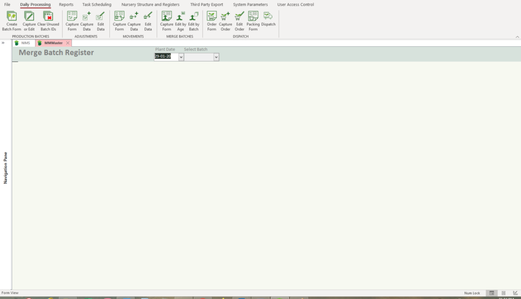 NIMS allows the user to control which batches are to be merged from NIMS. This means that you would prepare your merge in office, and then print an instructional form for your nursery staff. The merges you prepare are held in temporary batches in a preparation list.