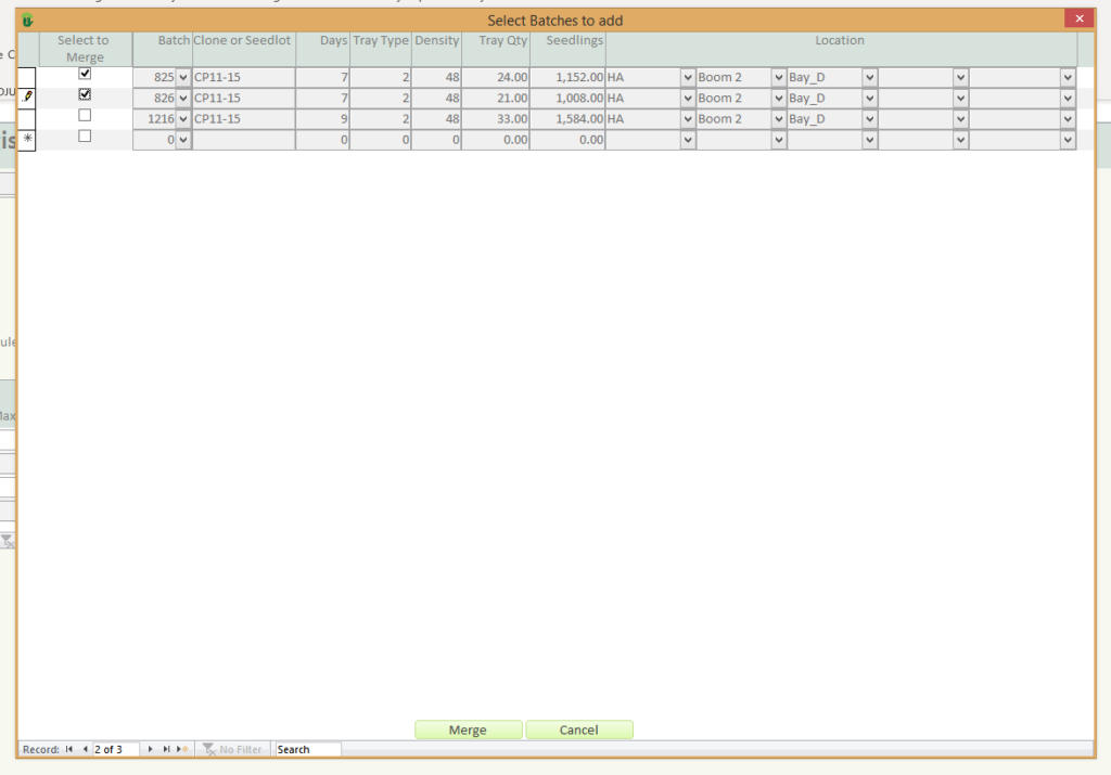 In addition as you have already chosen specific batches to merge, you willnot be able to change the Clone ID and Mother Plant, Seed Lot and tray information.