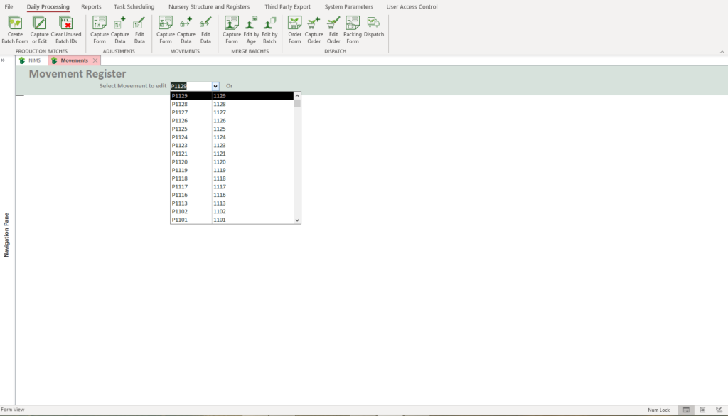When editing a movement you need to select the batch that you wish to edit the movement on.