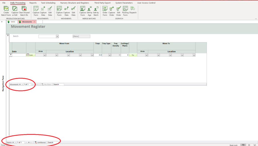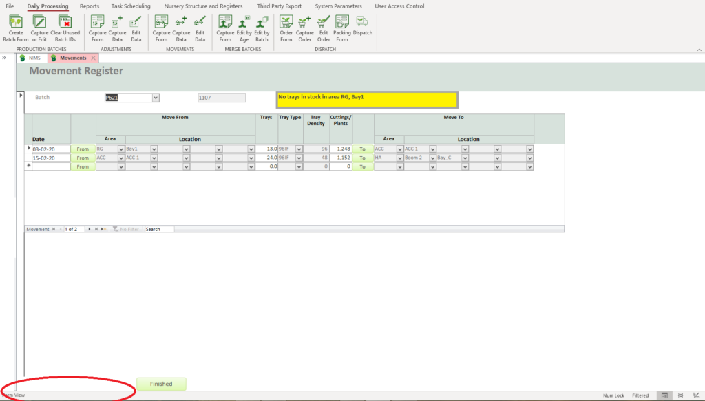 As your batch matures it will be moved through the Nursery from area to area. In order to know where your batch is, and what stock you have in a specific area, you need to record these movements.