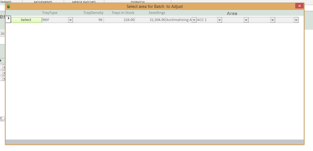 | Cuttings/Plants | Enter the quantity of plants to move | If you enter the qty of plants the trays will be adjusted. |