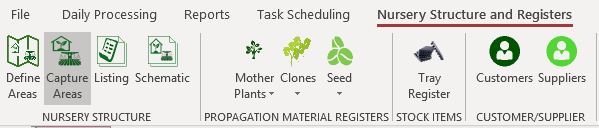 This Tab deals with setting up your Nursery structure and all the registers you use on NIMS.