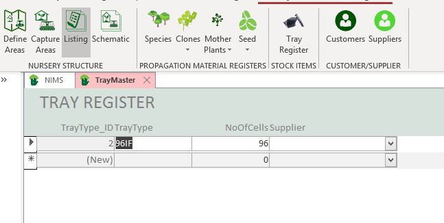 At this time NIMS is not controlling stock of Trays and consumables used in the Nursery. The module is planned for the future.