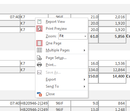 All reports can be viewed in either a report format or a printable format. By right clicking on the report tab, you can change the report view.