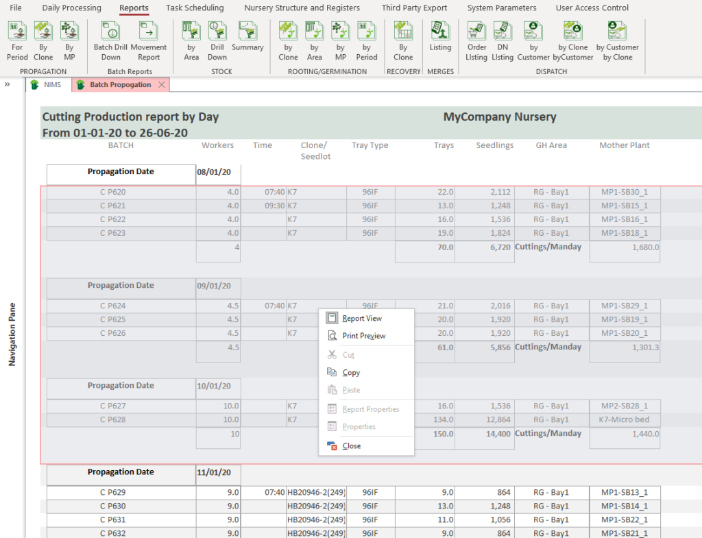 NIMS produces a number of reports aimed at helping you efficiently run your nursery.