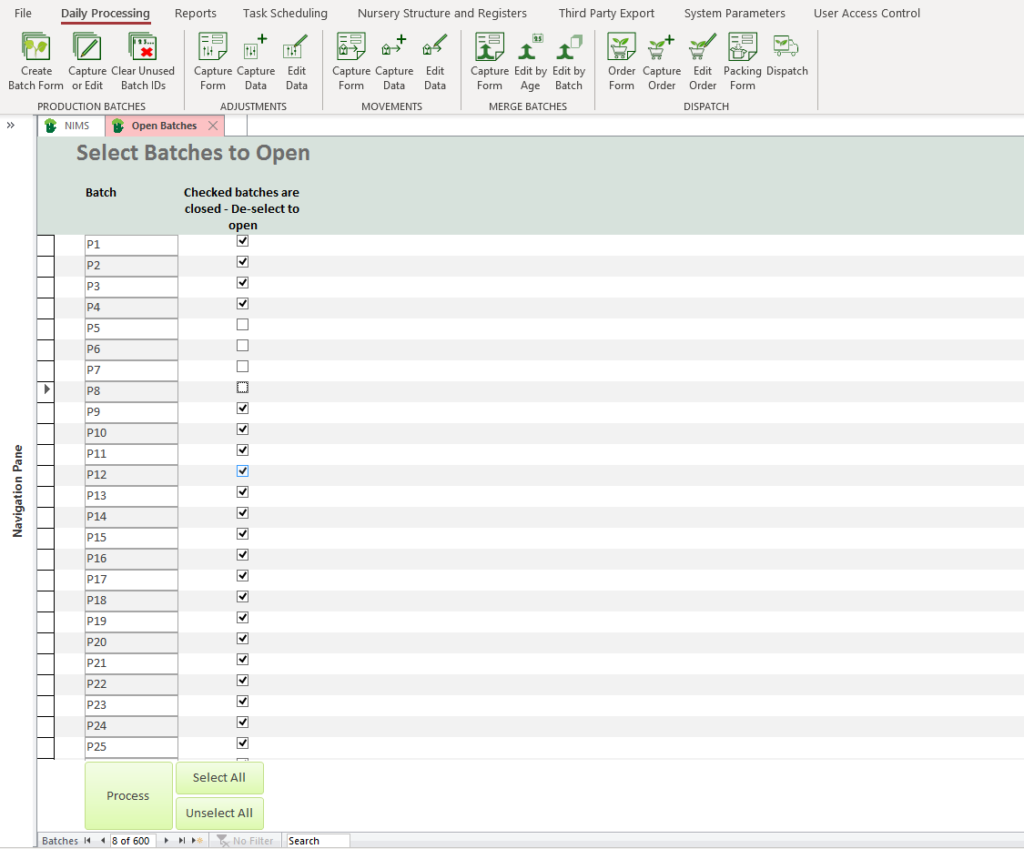 In this example batches P5, P6, P7 & P8 will be opened when you click on the